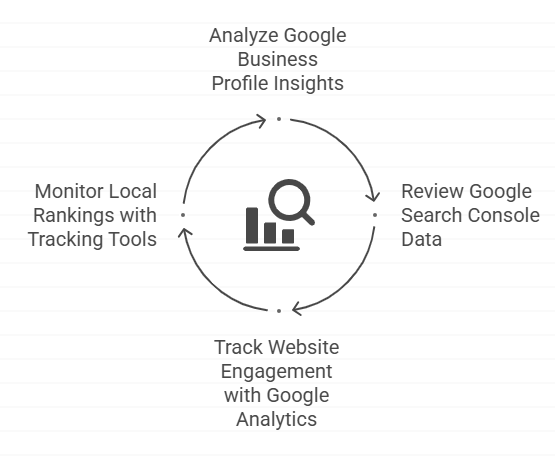 Check GBP Insights weekly. Review website analytics monthly. Run ranking reports fortnightly.